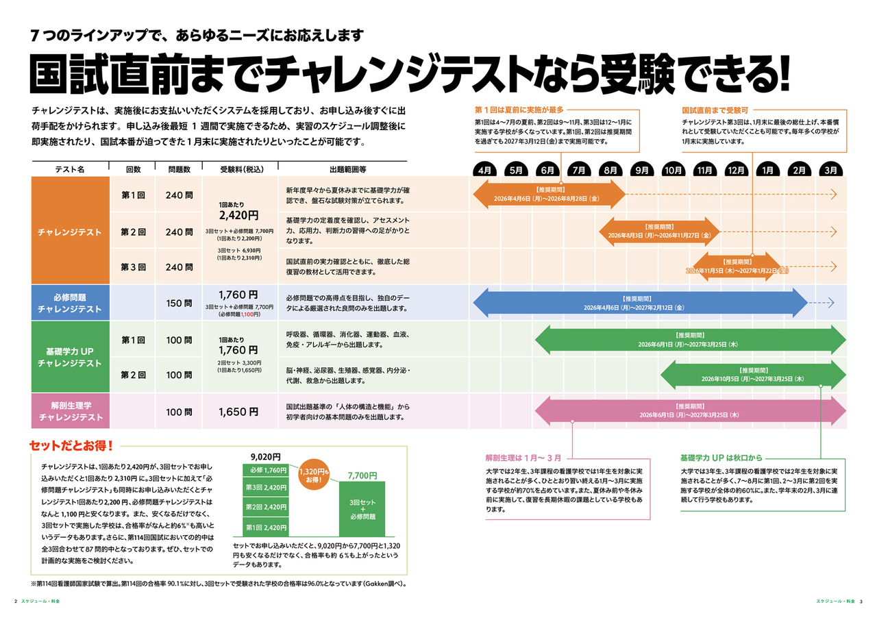 「チャレンジテスト3回セット+必修問題チャレンジテスト」の4回セット価格を2025年度、下記のとおり改定いたしました。