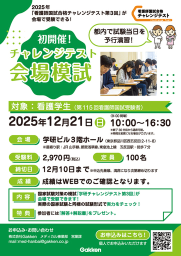 看護学生の皆様へ『チャレンジテスト第3回会場模試』開催のお知らせ